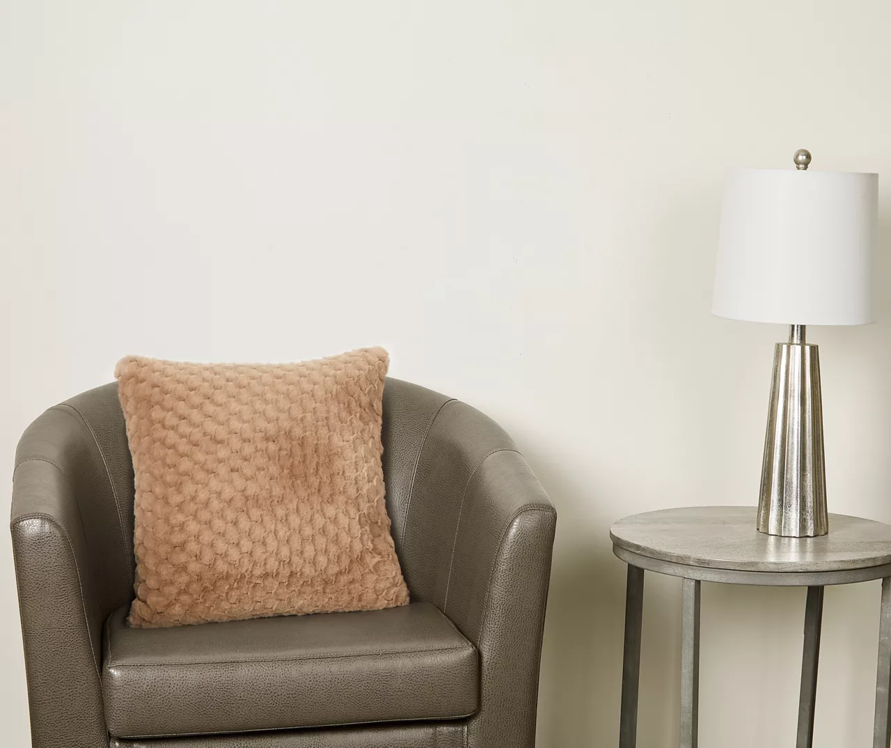 Brighten up your living space with this cozy Broyhill faux fur pillow. It showcases plush fabric in a scalloped design for double the texture. A versatile tan hue adds luxurious color to your space. Family and guests are sure to delight in the comfort and style of this pillow, whether you choose to display it on a chair, bench, sofa or loveseat.